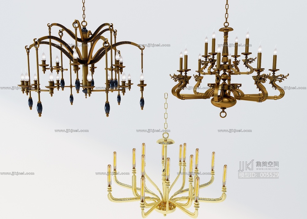 Z24-0723美式欧式铁艺吊灯 3d模型下载 [模型ID:5529]