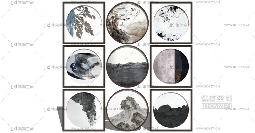 (17)新中式圆形水墨画 su草图模型下载 [模型ID:56921]