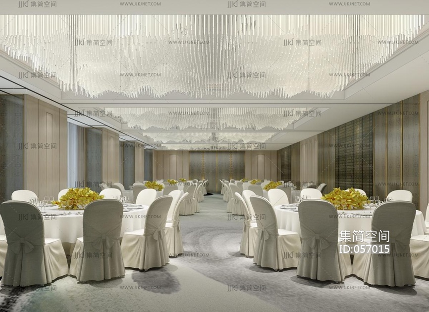 现代宴会厅宴会厅桌椅水晶吊灯3D模型3d模型下载
