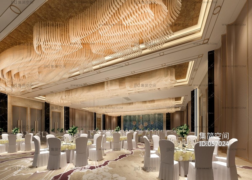 现代酒店大宴会厅3D模型3d模型下载