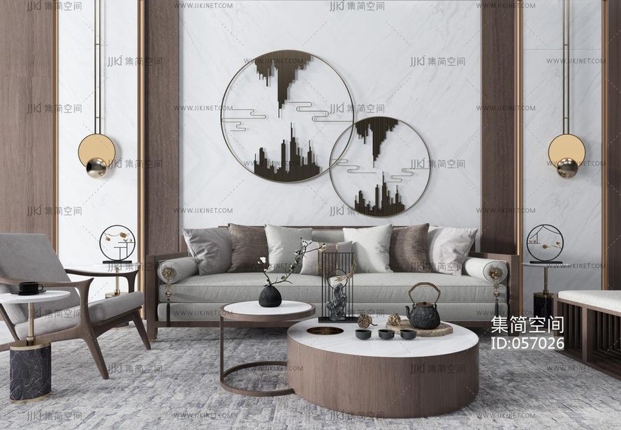 H96-0730新中式沙发茶几椅子圆形挂饰摆件 3d模型下载 [模型ID:57026]
