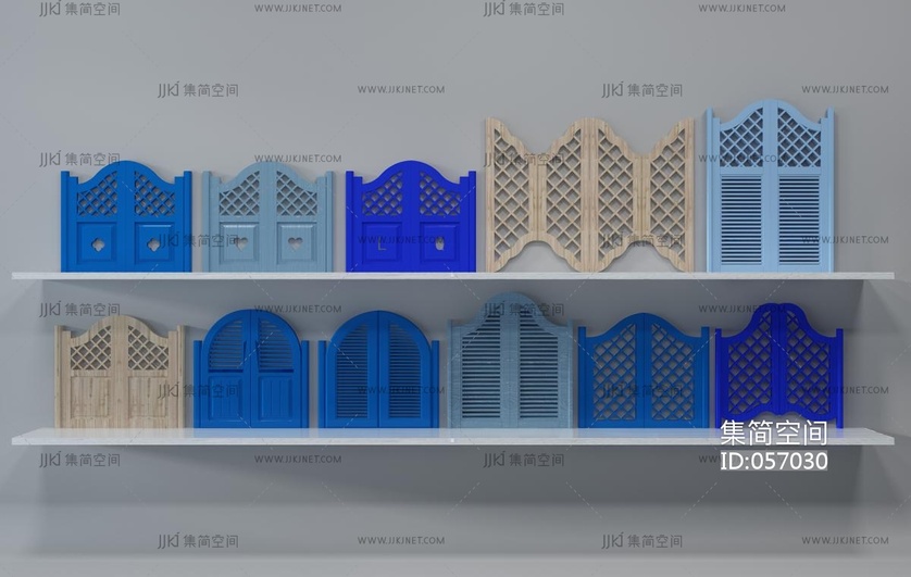 H102-0730地中海实木百叶门栅栏隔断组合 3d模型下载 [模型ID:57030]