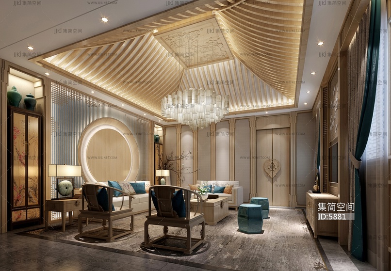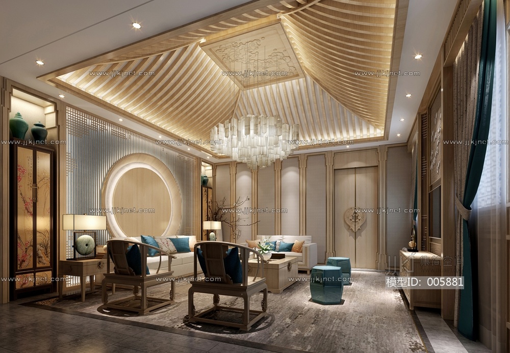 04新中式总统套客厅 3d模型下载 [模型ID:5881]