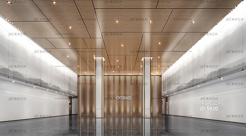 07现代中式大堂03 3d模型下载 [模型ID:5920]