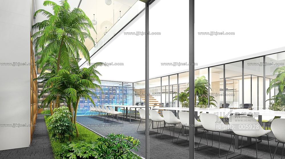 10-3现代开放会议室植物景观椰子树 3d模型下载 [模型ID:5928]