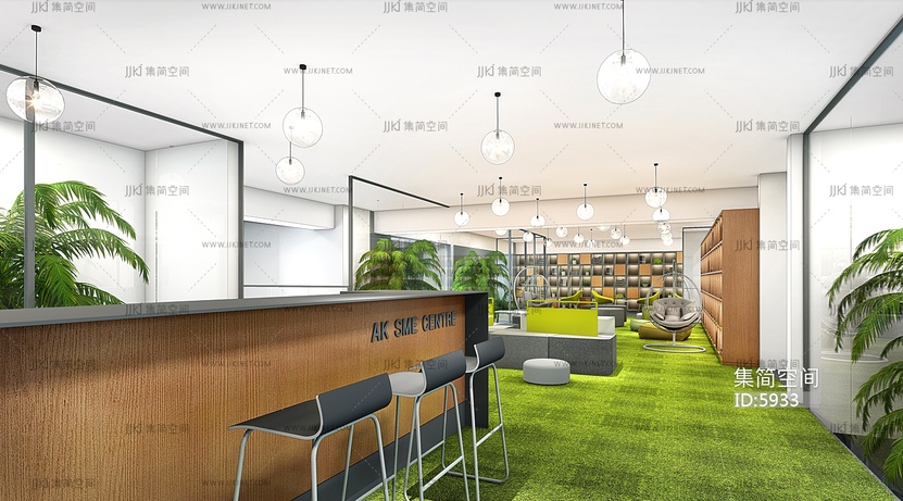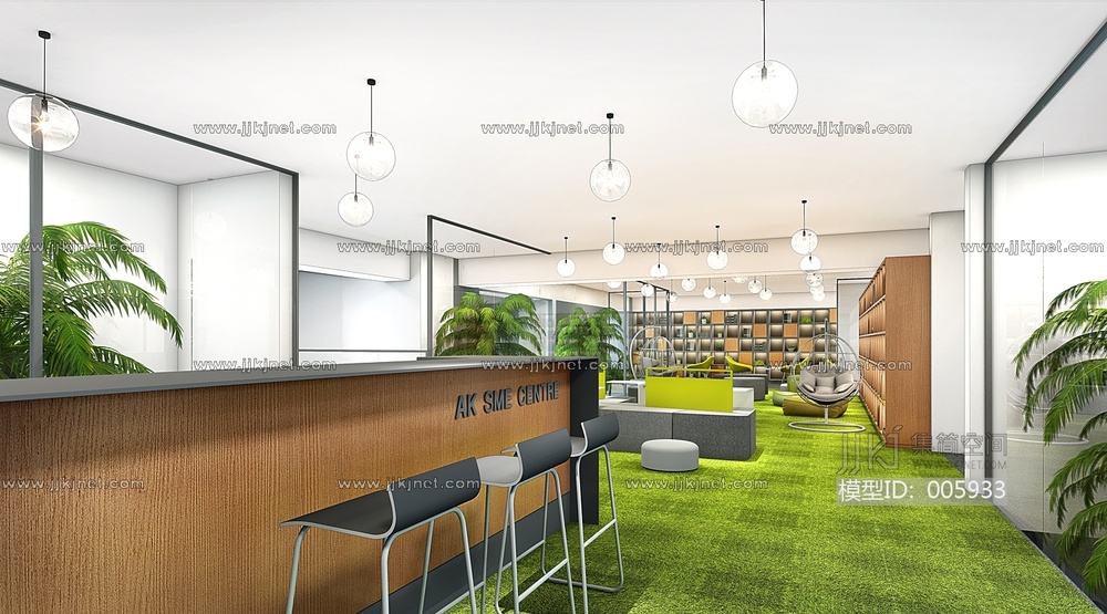10-3开放办公休闲洽谈区水吧休闲阅读区 3d模型下载 [模型ID:5933]
