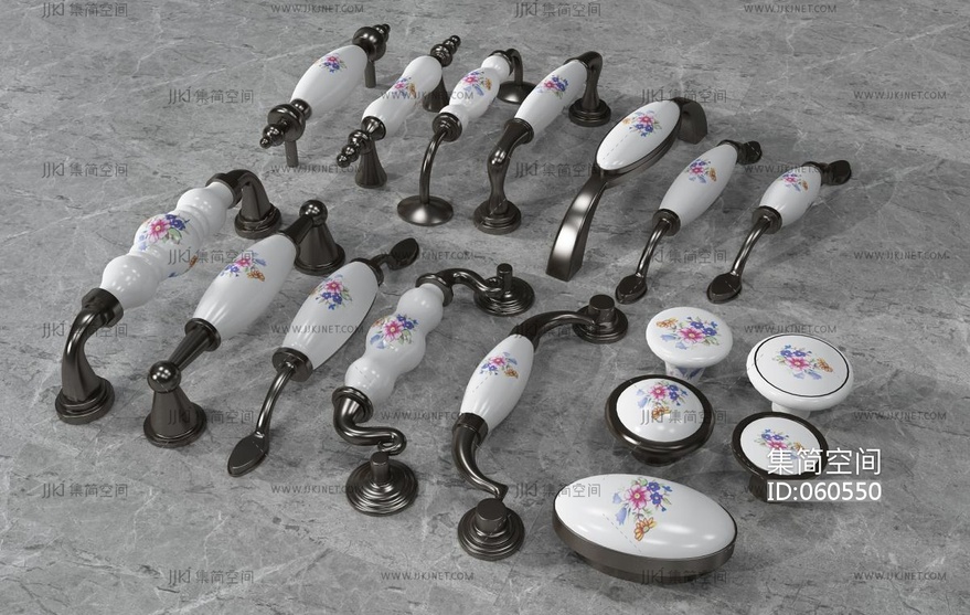 欧式仿古陶瓷红蓝花拉手把手组合 3d模型下载 [模型ID:60550]