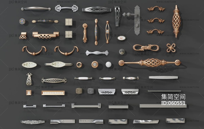 欧式金属门把手组合 3d模型下载 [模型ID:60551]