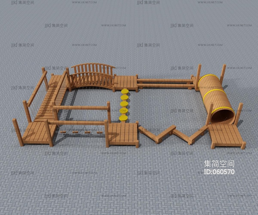 儿童原木游乐场 游乐场地器材娱乐器材3d模型下载