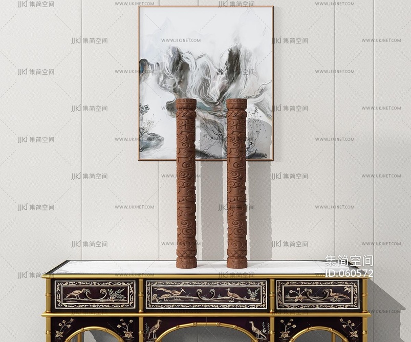 现代新中式雕塑摆件_饰品摆件组合3D模型3d模型下载