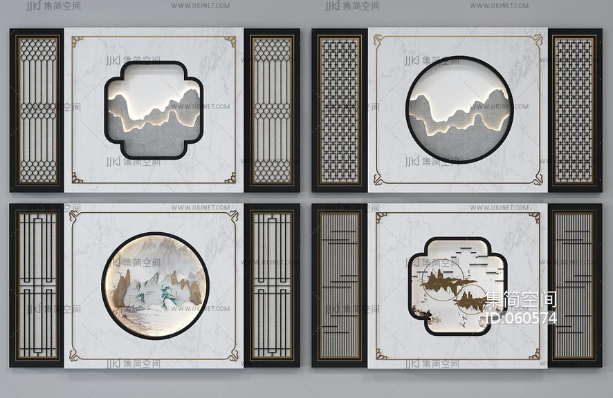 新中式背景墙 3d模型下载 [模型ID:60574]