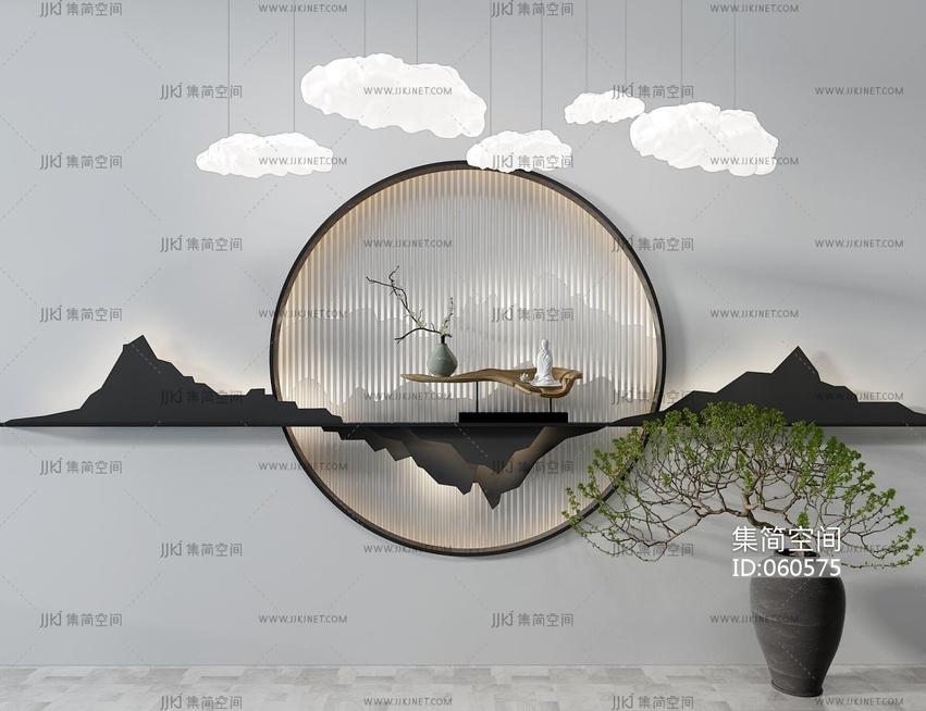 新中式石陶罐摆件背景墙 3d模型下载 [模型ID:60575]