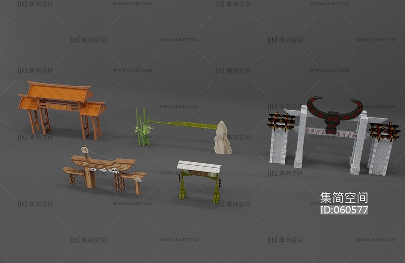 农家乐民宿大门牌楼 3d模型下载 [模型ID:60577]