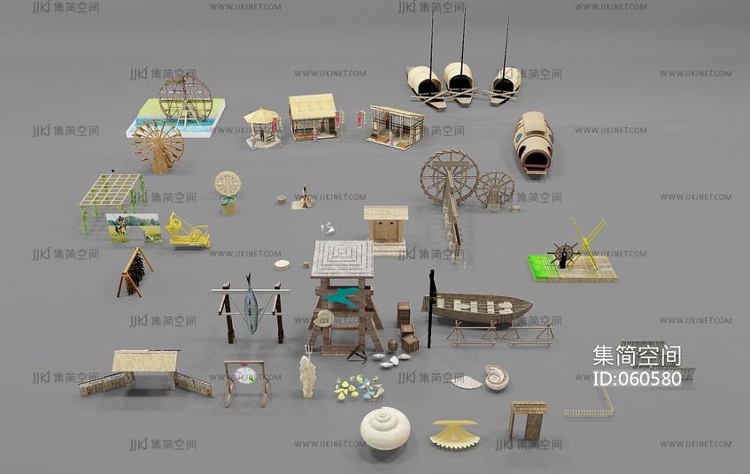 农家乐农具组合 3d模型下载 [模型ID:60580]