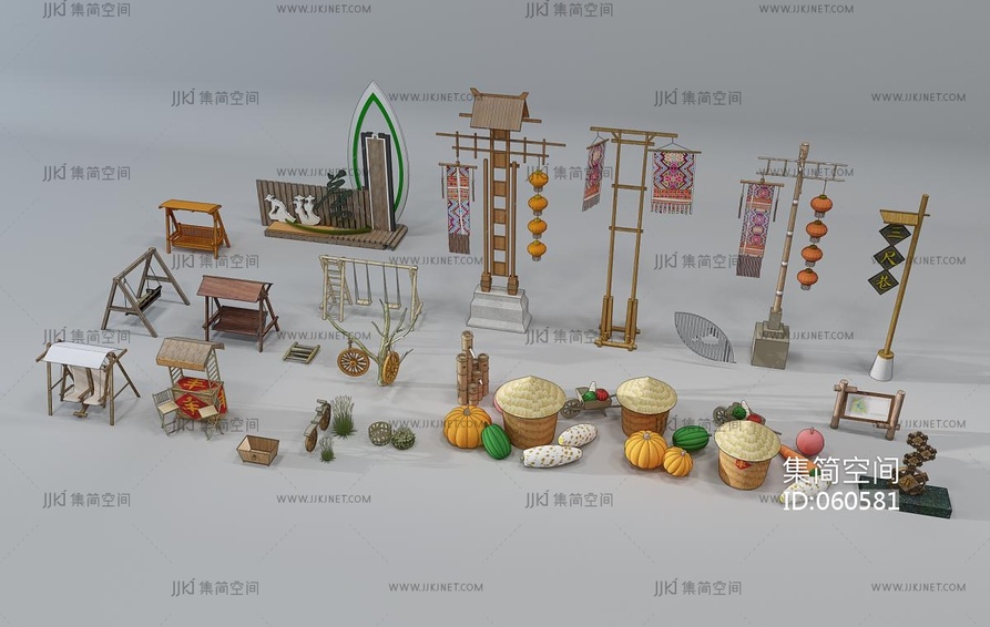 农家乐度秋千摇椅吊椅牌楼 3d模型下载 [模型ID:60581]