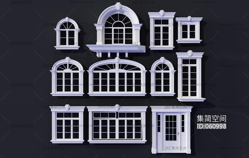 欧式拱形建筑窗入户门 3d模型下载 [模型ID:60998]