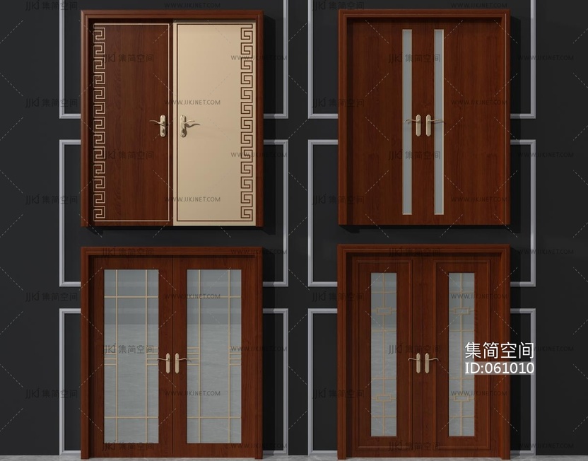 新中式实木双开门 3d模型下载 [模型ID:61010]