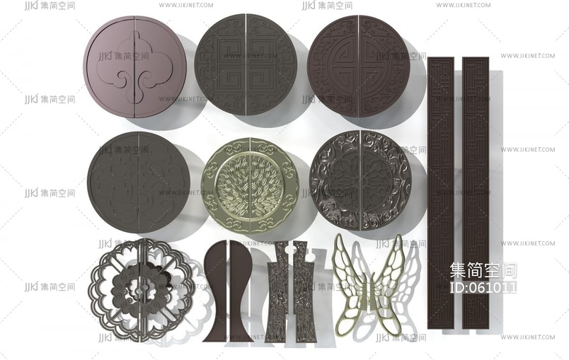新中式五金件门拉手 3d模型下载 [模型ID:61011]