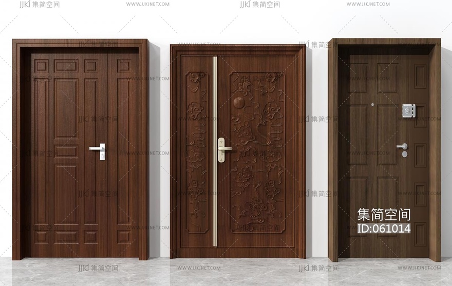 新中式单开门入户门_子母防盗门3D模型3d模型下载