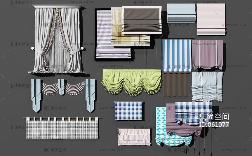 现代窗帘组合 3d模型下载 [模型ID:61077]