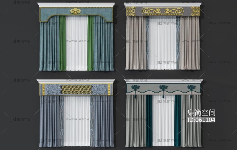 新中式窗帘 3d模型下载 [模型ID:61104]