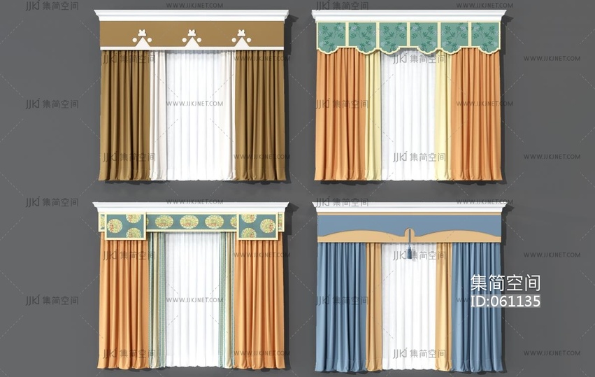 新中式窗帘帘头组合 3d模型下载 [模型ID:61135]