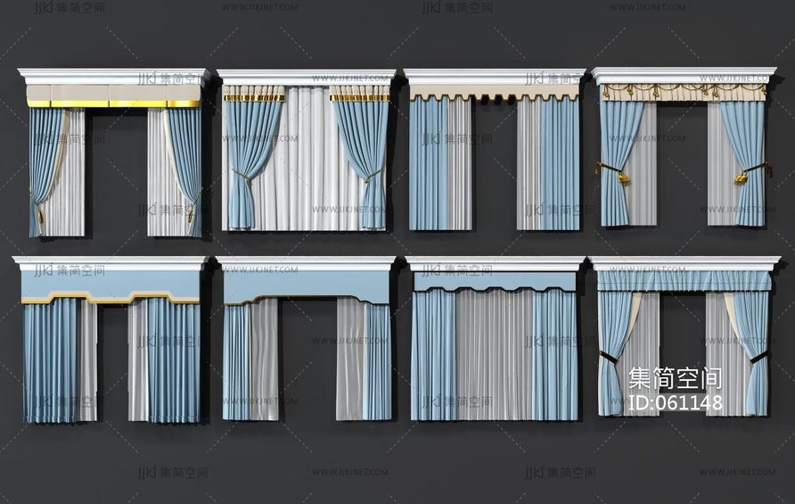 欧式窗帘帘头组合 3d模型下载 [模型ID:61148]
