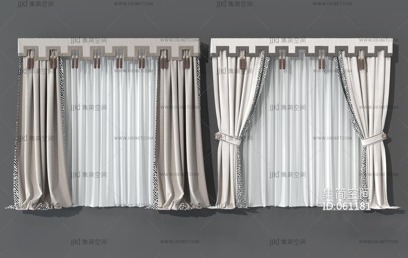 新中式窗帘组合 3d模型下载 [模型ID:61181]