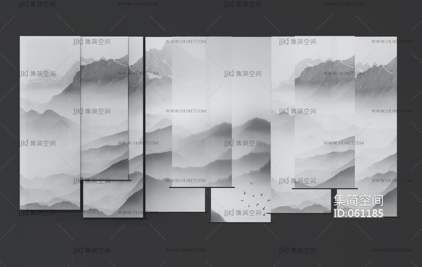 中式窗帘卷帘组合 3d模型下载 [模型ID:61185]