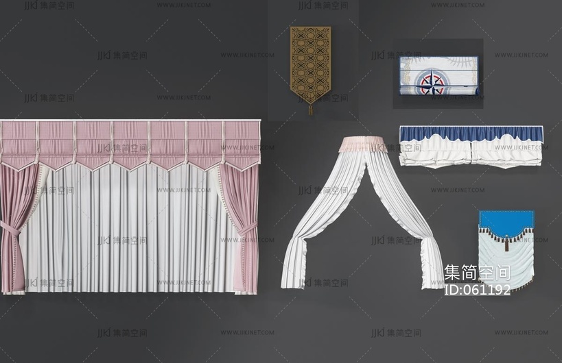 新中式窗帘窗幔组合 3d模型下载 [模型ID:61192]