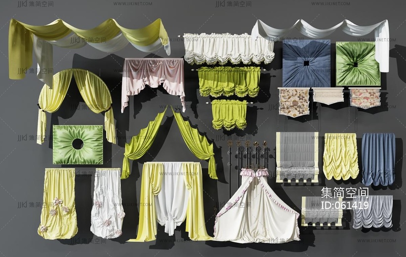 窗帘床幔组合 3d模型下载 [模型ID:61419]