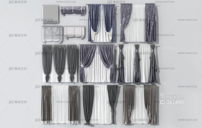 现代窗帘组合 3d模型下载 [模型ID:61490]