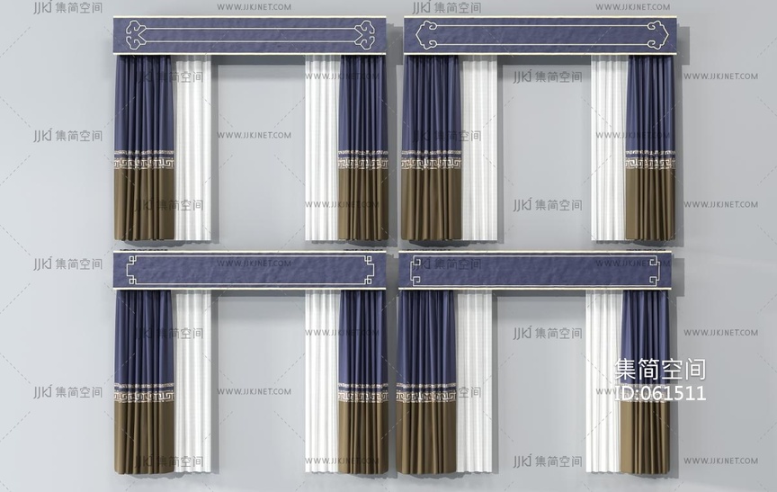 新中式窗帘组合 3d模型下载 [模型ID:61511]