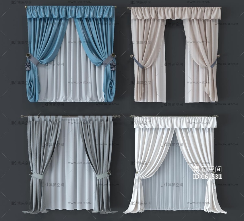 简欧式窗帘组合 3d模型下载 [模型ID:61531]
