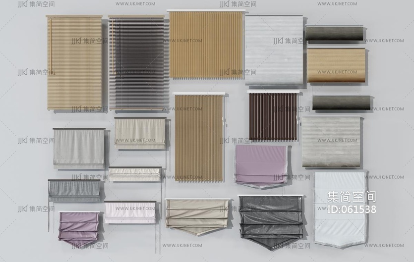 现代新中式罗马帘_布帘_罗马帘3D模型3d模型下载