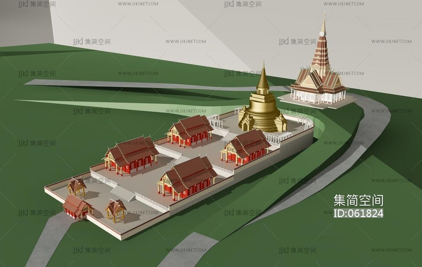 泰式古建筑佛塔 3d模型下载 [模型ID:61824]
