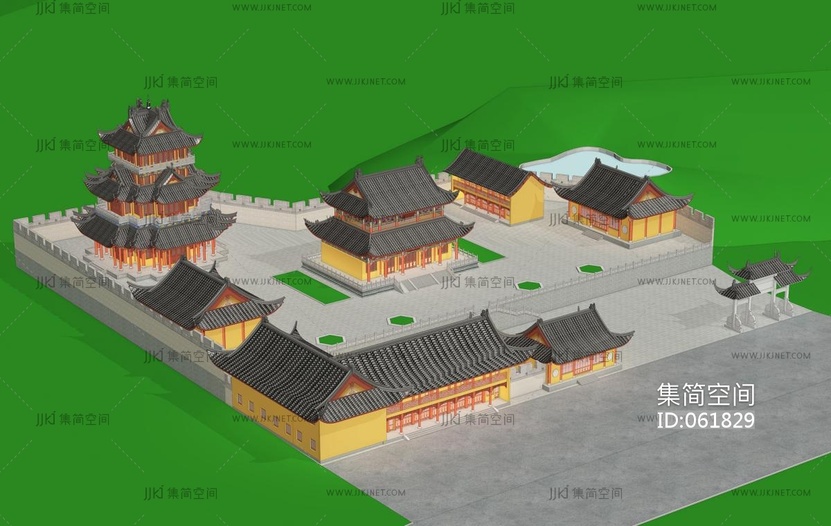 古建筑寺庙牌楼塔楼 3d模型下载 [模型ID:61829]