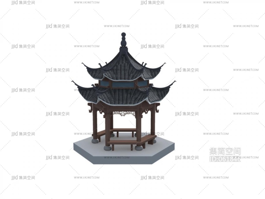 古建六角凉亭 3d模型下载 [模型ID:61846]