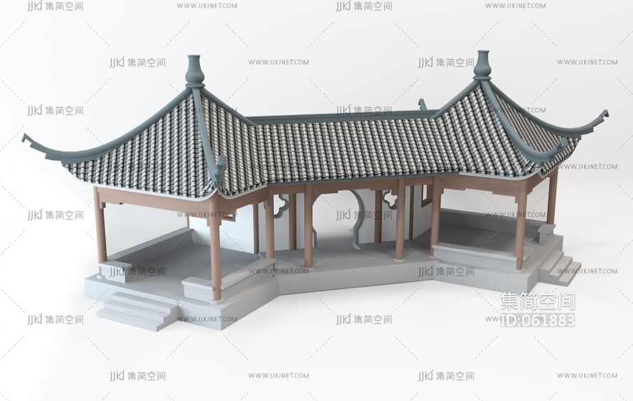 中式古建凉亭连廊 3d模型下载 [模型ID:61883]