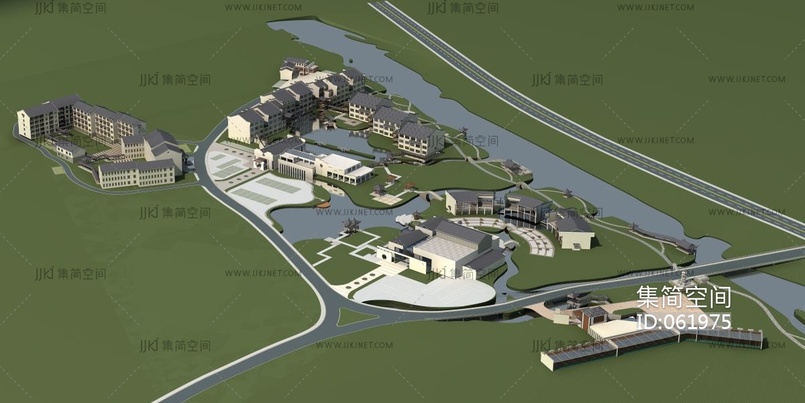 东南亚酒店度假酒店鸟瞰规划3d模型下载