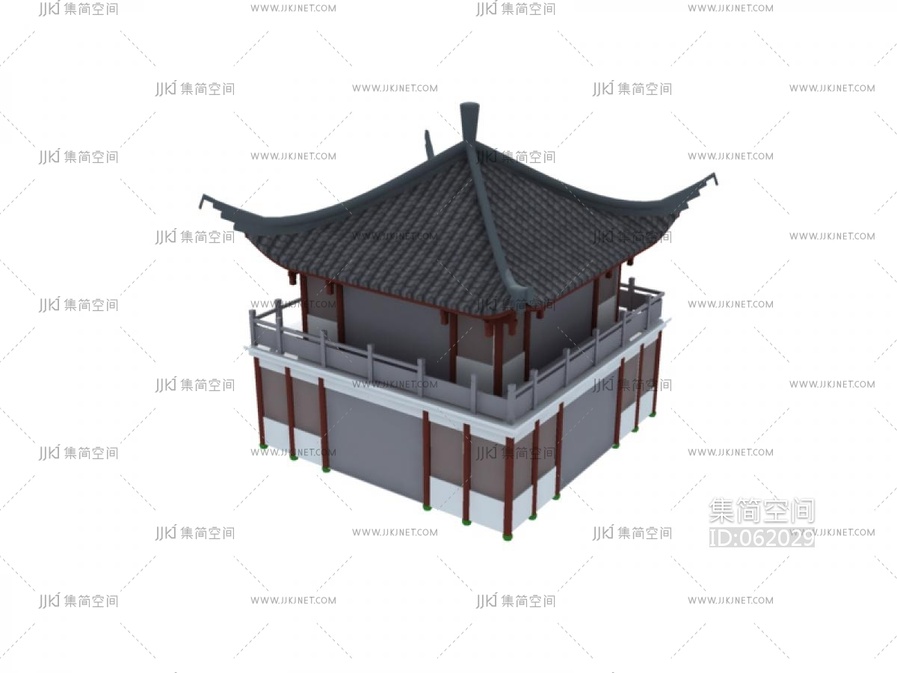 中式古建,盘龙柱,柱子 牌楼凉亭,游戏场景v3d模型下载