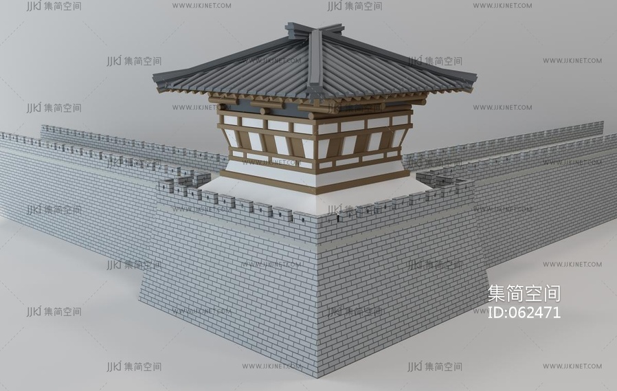 中式古建城门楼城墙 3d模型下载 [模型ID:62471]