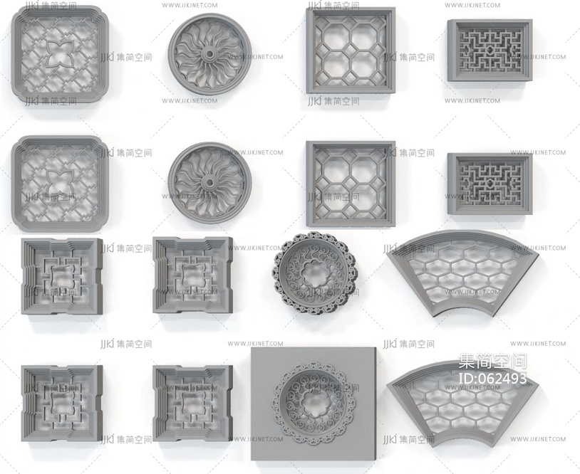 中式庭院院墙花窗景窗 3d模型下载 [模型ID:62493]