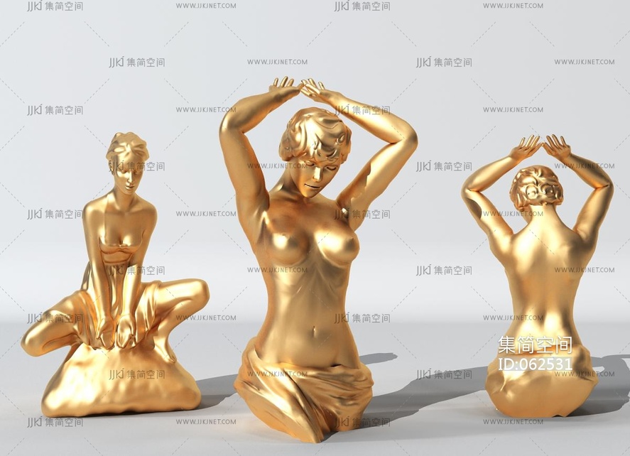 欧式金属人物女人雕塑 3d模型下载 [模型ID:62531]