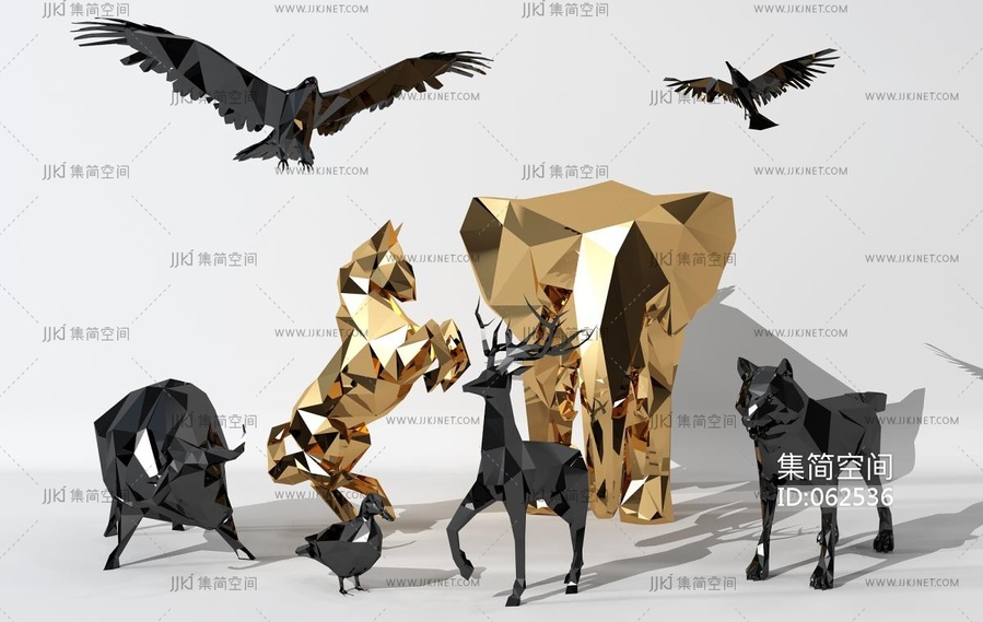 现代金属几何动物雕塑摆件 3d模型下载 [模型ID:62536]