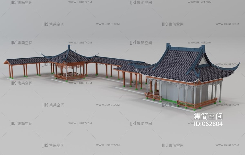 中式古建长廊 3d模型下载 [模型ID:62804]