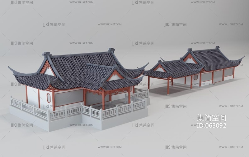 中式古建筑凉亭长廊 3d模型下载 [模型ID:63092]
