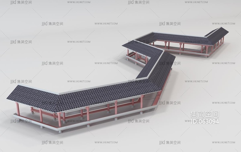 中式古建凉亭长廊 3d模型下载 [模型ID:63094]