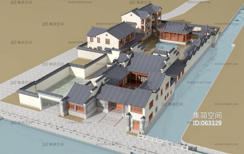 中式徽派建筑 3d模型下载 [模型ID:63129]