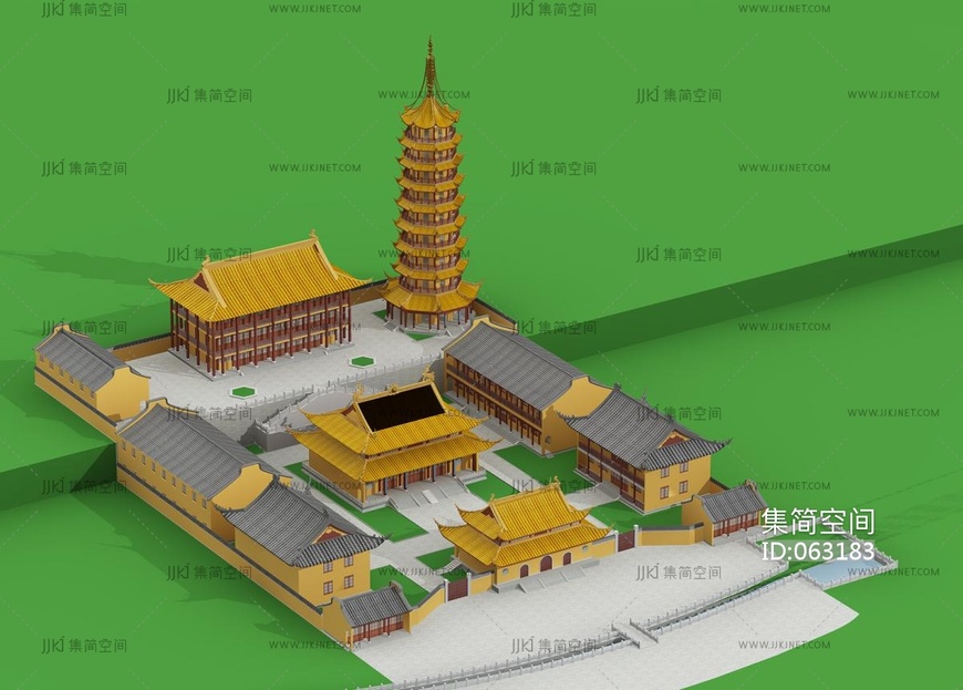 中式古建,盘龙柱,柱子 牌楼凉亭,游戏场景v3d模型下载